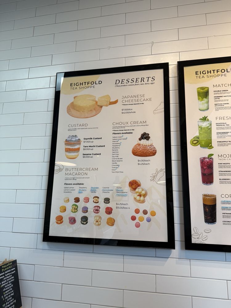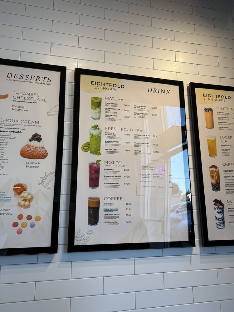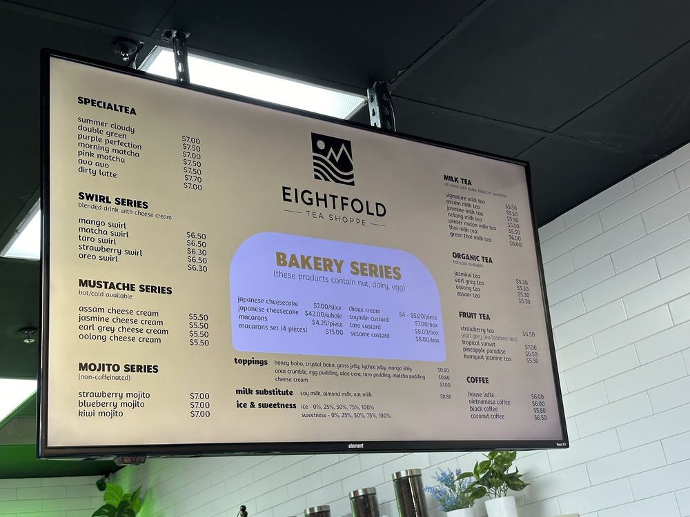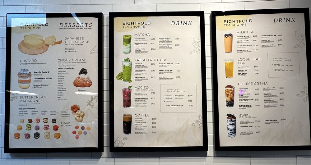 Located in Costa Mesa, CA, Eightfold Tea Shoppe is a hidden gem for dessert lovers. Specializing in a variety of milk teas, matcha drinks, and unique flavors like brown sugar fresh milk and salted caramel boba, this Asian-owned establishment offers a delightful menu suitable for all taste preferences. Customers rave about the refreshing kiwi mojito and the green Thai tea with boba, highlighting the shop's friendly staff and cozy ambiance. The diverse offerings cater to different dietary needs, including non-dairy milk options. With a focus on quality and customer satisfaction, Eightfold Tea Shoppe stands out for its inviting atmosphere and exceptional drink selection, making it a must-visit spot for tea enthusiasts and boba aficionados alike.